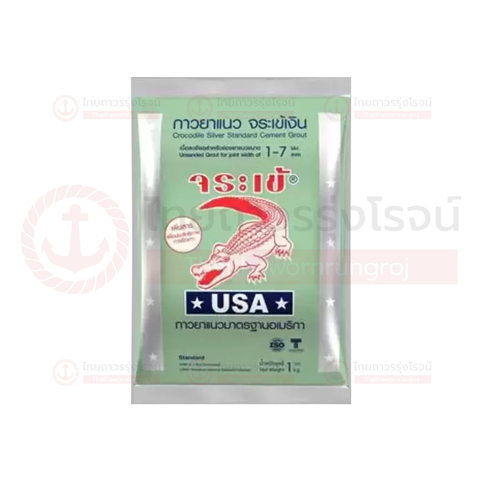 กาวยาแนว จระเข้เงิน เป็นปูนยาแนวชนิดพิเศษที่เหมาะสำหรับใช้ยาแนวพื้นที่ที่ต้องการความทนทานสูง ใช้กับร่องยาแนวที่มีขนาดไม่เกิน 7 มม. มีคุณสมบัติช่วยปกปิดรอยต่อร่องกระเบื้องได้อย่างเรียบเนียนสวยงาม รับแรงอัดและแรงดันน้ำได้สูง ใช้ได้ทั้งงานภายในและภายนอก เช่น สระว่ายน้ำ สปา และซาวน่า