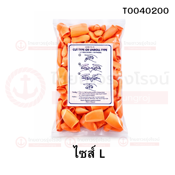 ถุงสวมนิ้ว สีส้ม 100ชิ้น L