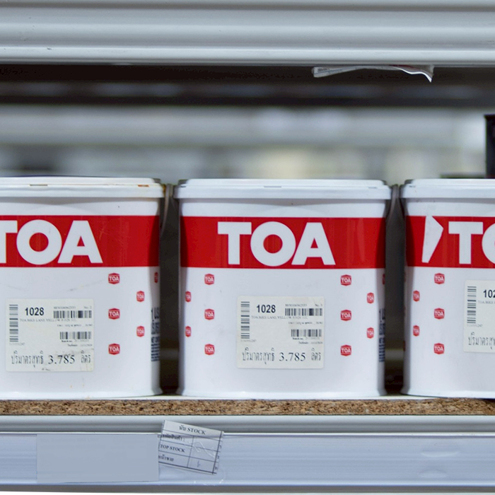 TOA สีเลนจักรยาน BIKE LANE (3.785ลิตร) |แกลลอน| รายละเอียด : ทีโอเอ ไบค์เลน สีสำหรับสนามจักรยาน สูตรน้ำ เป็นสีอะครีลิกชนิดพิเศษผสมผงสี ที่ช่วยป้องกันและลดการซีดจางจากรังสียูวี ฟิล์มสีเหมาะสาหรับการรับน้าหนักและการเสียดสีในการใช้งาน ฟิล์มสีมีความยืดหยุ่นสามารถยึดเกาะ บนพื้นผิวต่างๆได้เป็นอย่างดีและป้องกันน้าได้ดี คุณสมบัติ • ยึดเกาะพื้นผิวได้ดีเยี่ยม ทนต่อการเสียดสีจากล้อจักรยาน • ทาได้ทั้งพื้นผิวคอนกรีต และยางมะตอย • สูตรน้ำ แห้งเร็ว กลิ่นไม่ฉุน เป็นสีอะครีลิกชนิดพิเศษผสมผงสี ที่ช่วยป้องกันและลดการซีดจางจากรังสียูวี • ทาได้ทั้งพื้นผิวคอนกรีต และยางมะตอย • ฟิล์มสีเหมาะสาหรับการรับน้ำหนักและการเสียดสีในการใช้งาน • ฟิล์มสีมีความยืดหยุ่นสามารถยึดเกาะ บนพื้นผิวต่างๆได้เป็นอย่างดี ทนต่อการเสียดสีจากล้อจักรยาน • ป้องกันน้ำได้ดี ข้อมูลทางเทคนิค • การครอบคลุมพื้นที่ตามทฤษฎี 35-40 ตารางเมตร/แกลลอน (หมายเหตุ : การผสม, การใช้งาน, ความหยาบและรูพรุนของพื้นผิว มีผลต่อค่าการปกคลุมพื้นผิว) • ระยะเวลาแห้งสัมผัส (อุณหภูมิ25-30 ํC) 30-40 นาที • ระยะเวลาแห้งทาทับ (อุณหภูมิ25-30 ํC) 1 ชั่วโมง • ระยะเวลาแห้งสมบูรณ์ (อุณหภูมิ25-30 ํC) 7 วัน พื้นที่ใช้งาน • เหมาะสาหรับทาทับหน้าบนระบบพื้นผิวคอนกรีตและพื้นผิวบิทูเมน เช่น ขอบฟุตบาท,พื้นผิวถนนซีเมนต์ • และพื้นผิวถนนลาดยางมะตอย เป็นต้น เหมาะสาหรับการใช้งานหนัก โดยเฉพาะอย่างยิ่ง สนามกีฬาและเลนจักรยาน วิธีใช้งาน • อุปกรณ์ : การทาด้วยแปรง,กลิ้งด้วยลูกกลิ้ง และพ่น • ทินเนอร์ : น้ำสะอาด • การผสมทินเนอร์ (%) : ระบการทาและกลิ้ง 5 – 10 % โดยปริมาตร , ระบการพ่น 20-30 % โดยปริมาตร ระบบการใช้งานการเตรียมพื้นผิว • พื้นผิวใหม่ : ทิ้งพื้นผิวให้แห้งสนิท : พื้นผิวที่จะใช้งานต้องสะอาด ปราศจากฝุ่น คราบไข คราบน้ำมัน แวกซ์ คราบเกลือ และ สิ่งปนเปื้อนต่างๆ • พื้นผิวเก่า : พื้นผิวที่จะใช้งานต้องสะอาด ปราศจากฝุ่น, คราบไข, คราบน้ำมัน, แวกซ์, คราบเกลือ, สีเก่า และสิ่งปนเปื้อนต่างๆ : พื้นผิวที่เป็นชอล์ค หรือ เสื่อมสภาพ ต้องขัดทำความสะอาดด้วยแปรงไนลอน : พื้นผิวที่มีตะไคร่น้ำ และ เชื้อรา ให้กำจัดด้วย ทีโอเอ 113 ไมโครคิลล์ (TOA113 Microkill) : ทำความสะอาดพื้นผิวด้วยน้ำและน้ำยาทำความสะอาดที่เหมาะสม แล้วล้างด้วยน้ำสะอาดอีกครั้งก่อนทิ้งไว้ให้แห้งสนิท ระบบการทาสี • สีรองพื้น : ทีโอเอ เอ็กซ์ตร้า เว้ท ไพร์เมอร์ จำนวน 1 เที่ยว • สีทับหน้า : ทีโอเอ ไบค์ เลน เพ้นท์ จำนวน 3 เที่ยว **แนะนำควรรองพื้นด้วย สีรองพื้นปูนเก่า และปูนใหม่ สีขาว ExtraWet เพื่อการยึดเกาะพื้นผิวที่ดีขึ้น ทนทานต