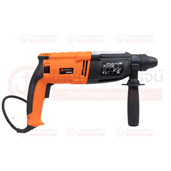PUMPKIN สว่านโรตารี่ 28mm 800W รุ่น 42211/PTT2-26D คุณสมบัติ • กำลังไฟฟ้า 800 W. • ความเร็วหมุนเปล่า 0-900 รอบ/นาที • อัตราการกระแทก 0-4,000 / นาที • แรงกระแทก 3.0 จูล • สมรรถนะในการเจาะ • คอนกรีต 26 mm. • น้ำหนักเครื่อง 3 KG. • เงื่อนไขการ