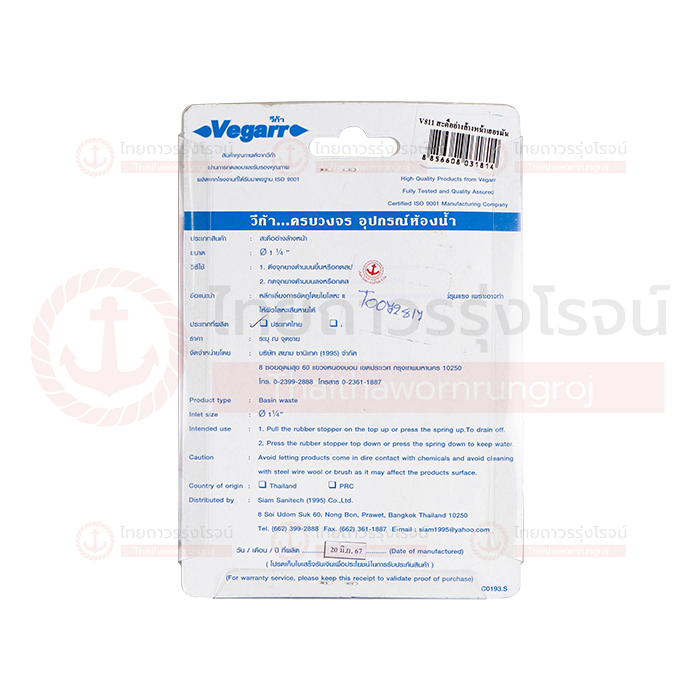VEGARR สะดืออ่างล้างหน้า สแตนเลส แบบเยอรมัน รุ่น V811
