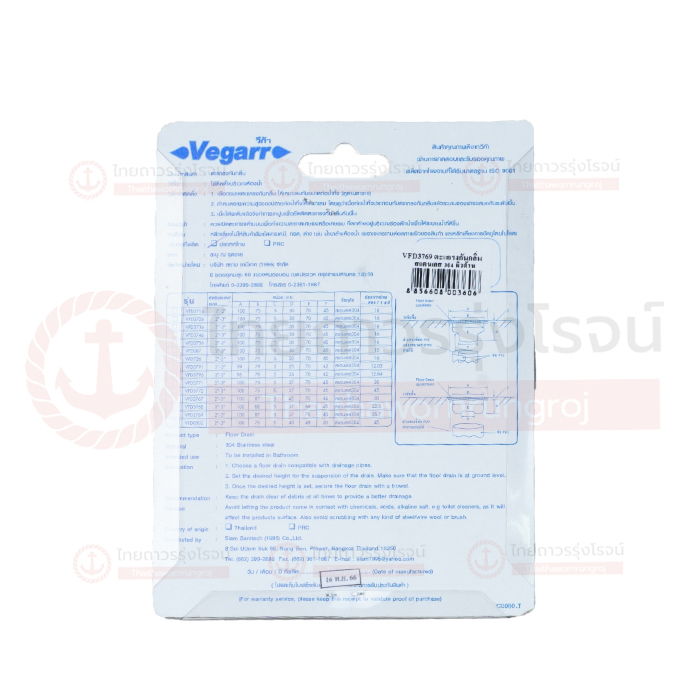 • ตะแกรงกันกลิ่นสแตนเลส 304 รุ่น VFD3769 แบรนด์ Vegarr