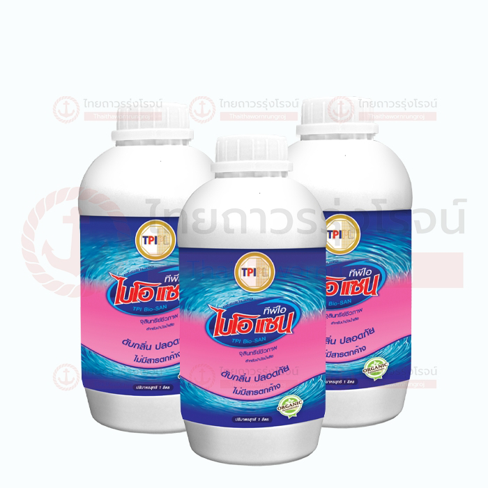 ทีพีไอ ไบโอแซน (TPI Bio-San) มีลักษณะเป็นน้ำ สีเข้ม ผลิตจากอินทรีย์ธรรมชาติ เข้มข้ม ด้วยจุลินทรีย์คุณภาพสูงใช้สำหรับบำบัดน้ำเสีย ย่อยกากปฏิกูล ลดยุงและแมลงวัน ลดกลิ่นเหม็น กลิ่นไม่พึงประสงค์ต่างๆที่เกิดจากก๊าซไข่เน่า ก๊าซแอมโมเนีย เป็นต้น