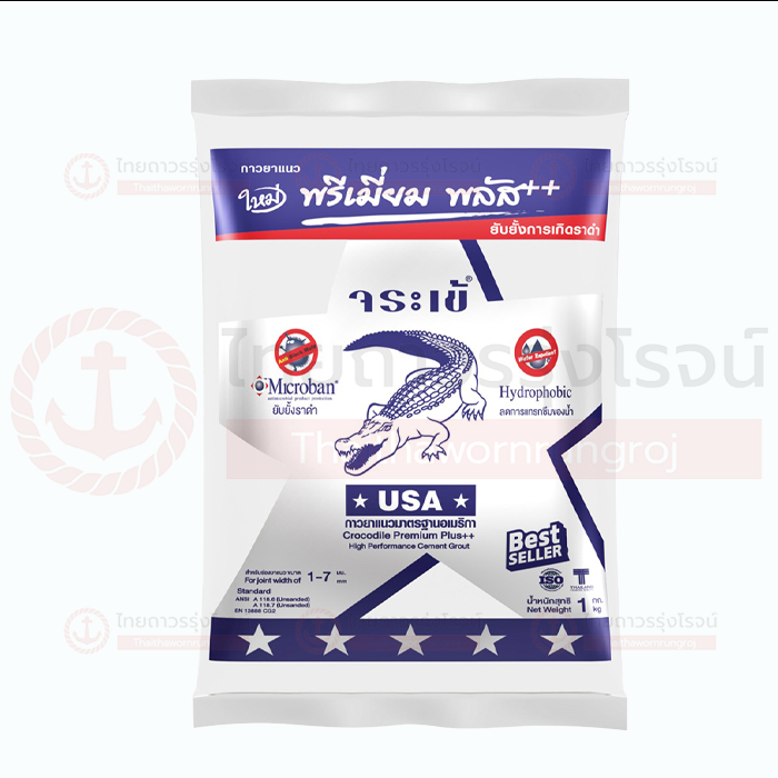 กาวยาแนว จระเข้เงิน เป็นปูนยาแนวชนิดพิเศษที่เหมาะสำหรับใช้ยาแนวพื้นที่ที่ต้องการความทนทานสูง ใช้กับร่องยาแนวที่มีขนาดไม่เกิน 7 มม. มีคุณสมบัติช่วยปกปิดรอยต่อร่องกระเบื้องได้อย่างเรียบเนียนสวยงาม รับแรงอัดและแรงดันน้ำได้สูง ใช้ได้ทั้งงานภายในและภายนอก เช่น สระว่ายน้ำ สปา และซาวน่า