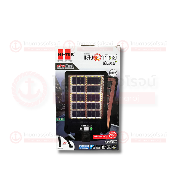 HI-TEK โคมไฟถนน โซล่า LED PHOENIX ชาร์จ 2ด้าน 100w เดย์ไลท์ HFSS02100D