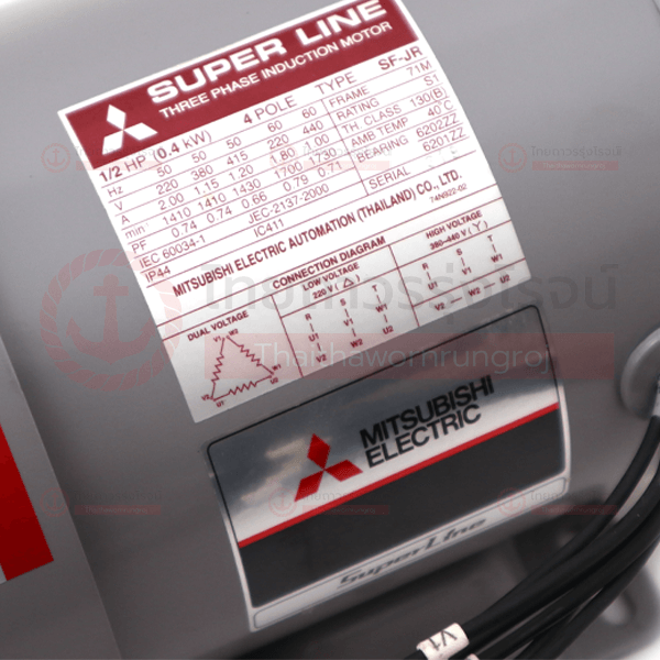MITSUBISHI มอเตอร์ SF-JR(SFQR) 1/2HP 4P 380v 1450รอบ เพลา 14mm IP44