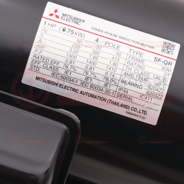 MITSUBISHI มอเตอร์ SF-JR(SFQR) 1HP 4P 380v 1450รอบ เพลา 19mm IP44