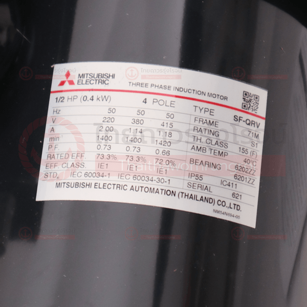 MITSUBISHI มอเตอร์หน้าแปลน SF-JRV(SF-QRV) 1/2HP 4P 220/380v 1450รอบ เพลา14mm IP55