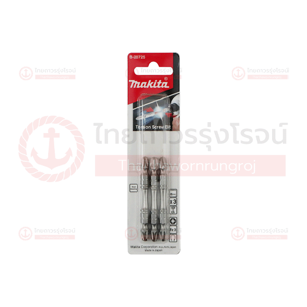 MAKITA ดอกไขควงสีเงินสองหัว 3นิ้ว x65mm PZ B-20725 (3ชิ้น)