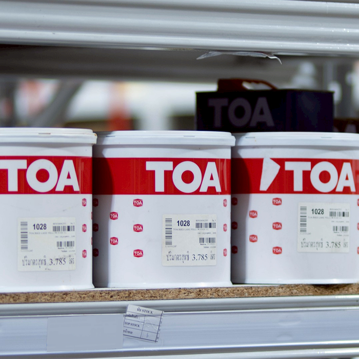 TOA สีเลนจักรยาน BIKE LANE (3.785ลิตร) |แกลลอน| รายละเอียด : ทีโอเอ ไบค์เลน สีสำหรับสนามจักรยาน สูตรน้ำ เป็นสีอะครีลิกชนิดพิเศษผสมผงสี ที่ช่วยป้องกันและลดการซีดจางจากรังสียูวี ฟิล์มสีเหมาะสาหรับการรับน้าหนักและการเสียดสีในการใช้งาน ฟิล์มสีมีความยืดหยุ่นสามารถยึดเกาะ บนพื้นผิวต่างๆได้เป็นอย่างดีและป้องกันน้าได้ดี คุณสมบัติ • ยึดเกาะพื้นผิวได้ดีเยี่ยม ทนต่อการเสียดสีจากล้อจักรยาน • ทาได้ทั้งพื้นผิวคอนกรีต และยางมะตอย • สูตรน้ำ แห้งเร็ว กลิ่นไม่ฉุน เป็นสีอะครีลิกชนิดพิเศษผสมผงสี ที่ช่วยป้องกันและลดการซีดจางจากรังสียูวี • ทาได้ทั้งพื้นผิวคอนกรีต และยางมะตอย • ฟิล์มสีเหมาะสาหรับการรับน้ำหนักและการเสียดสีในการใช้งาน • ฟิล์มสีมีความยืดหยุ่นสามารถยึดเกาะ บนพื้นผิวต่างๆได้เป็นอย่างดี ทนต่อการเสียดสีจากล้อจักรยาน • ป้องกันน้ำได้ดี ข้อมูลทางเทคนิค • การครอบคลุมพื้นที่ตามทฤษฎี 35-40 ตารางเมตร/แกลลอน (หมายเหตุ : การผสม, การใช้งาน, ความหยาบและรูพรุนของพื้นผิว มีผลต่อค่าการปกคลุมพื้นผิว) • ระยะเวลาแห้งสัมผัส (อุณหภูมิ25-30 ํC) 30-40 นาที • ระยะเวลาแห้งทาทับ (อุณหภูมิ25-30 ํC) 1 ชั่วโมง • ระยะเวลาแห้งสมบูรณ์ (อุณหภูมิ25-30 ํC) 7 วัน พื้นที่ใช้งาน • เหมาะสาหรับทาทับหน้าบนระบบพื้นผิวคอนกรีตและพื้นผิวบิทูเมน เช่น ขอบฟุตบาท,พื้นผิวถนนซีเมนต์ • และพื้นผิวถนนลาดยางมะตอย เป็นต้น เหมาะสาหรับการใช้งานหนัก โดยเฉพาะอย่างยิ่ง สนามกีฬาและเลนจักรยาน วิธีใช้งาน • อุปกรณ์ : การทาด้วยแปรง,กลิ้งด้วยลูกกลิ้ง และพ่น • ทินเนอร์ : น้ำสะอาด • การผสมทินเนอร์ (%) : ระบการทาและกลิ้ง 5 – 10 % โดยปริมาตร , ระบการพ่น 20-30 % โดยปริมาตร ระบบการใช้งานการเตรียมพื้นผิว • พื้นผิวใหม่ : ทิ้งพื้นผิวให้แห้งสนิท : พื้นผิวที่จะใช้งานต้องสะอาด ปราศจากฝุ่น คราบไข คราบน้ำมัน แวกซ์ คราบเกลือ และ สิ่งปนเปื้อนต่างๆ • พื้นผิวเก่า : พื้นผิวที่จะใช้งานต้องสะอาด ปราศจากฝุ่น, คราบไข, คราบน้ำมัน, แวกซ์, คราบเกลือ, สีเก่า และสิ่งปนเปื้อนต่างๆ : พื้นผิวที่เป็นชอล์ค หรือ เสื่อมสภาพ ต้องขัดทำความสะอาดด้วยแปรงไนลอน : พื้นผิวที่มีตะไคร่น้ำ และ เชื้อรา ให้กำจัดด้วย ทีโอเอ 113 ไมโครคิลล์ (TOA113 Microkill) : ทำความสะอาดพื้นผิวด้วยน้ำและน้ำยาทำความสะอาดที่เหมาะสม แล้วล้างด้วยน้ำสะอาดอีกครั้งก่อนทิ้งไว้ให้แห้งสนิท ระบบการทาสี • สีรองพื้น : ทีโอเอ เอ็กซ์ตร้า เว้ท ไพร์เมอร์ จำนวน 1 เที่ยว • สีทับหน้า : ทีโอเอ ไบค์ เลน เพ้นท์ จำนวน 3 เที่ยว **แนะนำควรรองพื้นด้วย สีรองพื้นปูนเก่า และปูนใหม่ สีขาว ExtraWet เพื่อการยึดเกาะพื้นผิวที่ดีขึ้น ทนทานต