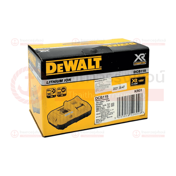 DEWALT แท่นชาร์จแบตเตอรี่ LI-ION 10.8v,12v,18v,20v,54v 8.0Amp DCB118-KR กล่องกระดาษ