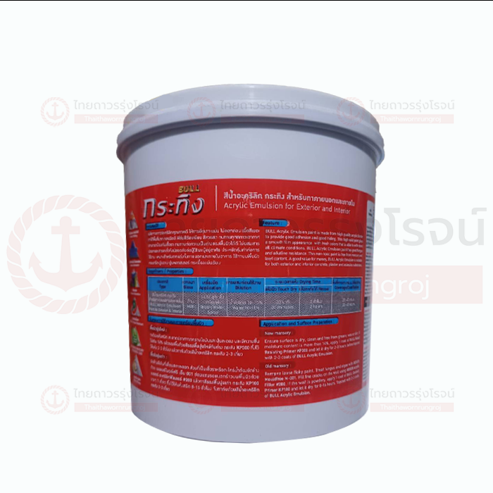 ขัดล้างสีเดิมที่เสื่อมสภาพออก ซ่อมแซมรอยแตกร้าว แล้วทากระทิง สีรองพื้นปูนเก่า KP100 บางๆ 1 เที่ยว ทิ้งไว้ให้แห้งสนิท 8-16 ชั่วโมง จึงทาทับด้วยกระทิง สีน้ำอะคริลิก 2-3 เที่ยว