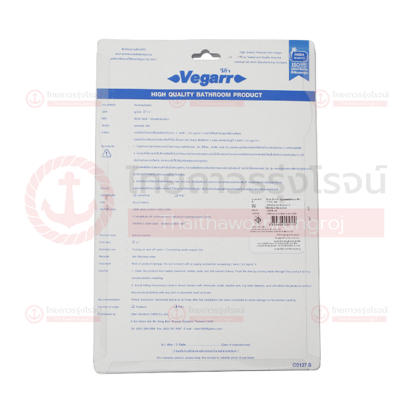 ก๊อกอ่างล้างหน้าน้ำเย็น แบบติดตั้งกับเคาน์เตอร์อ่างล้างหน้า VEGARR ผลิตจากสเตนเลสคุณภาพดี แข็งแรงทนทาน วาล์วเป็นเซรามิก ไส้วาล์วไม่รั่วซึมตลอดอายุการใช้งาน ดีไซน์ส