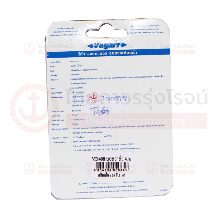 • บอลวาล์ว VEGARR รุ่น VD-408