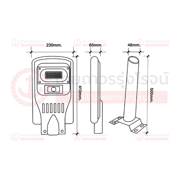 LED Solar streetlight smart sensor พร้อมรีโมท โคมไฟส่องถนนพลังงานแสงอาทิตย์ พร้อมเซ็นเซอร์จับความสว่างและการเคลื่อนไหว ทำจากวัสดุโครงสร้าง และการประกอบคุณภาพสูง ป้องกันน้ำกันฝุ่น ระดับ IP65 สะดวกในการติดตั้งพร้อมขากิ่ง(เสา) และอุปกรณ์ครบชุด ติดตั้งง่าย ไม่ต้องเดินสายไฟ ไม่ต้องเสียค่าไฟ ควบคุมการทำงานด้วยรีโมท