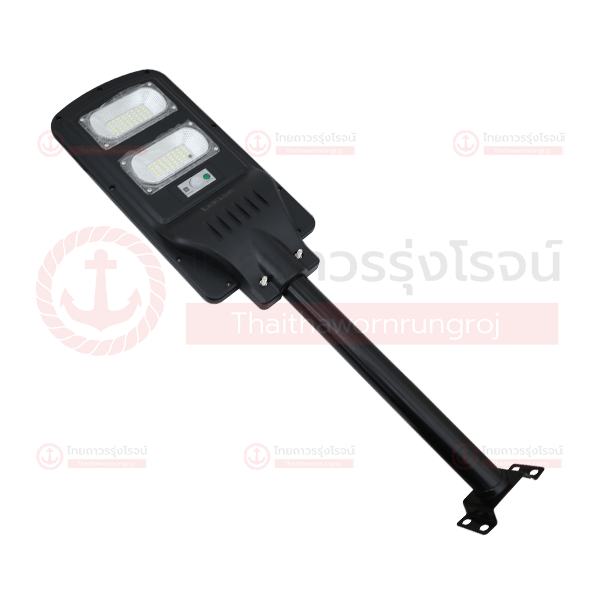 LED Solar streetlight smart sensor พร้อมรีโมท โคมไฟส่องถนนพลังงานแสงอาทิตย์ พร้อมเซ็นเซอร์จับความสว่างและการเคลื่อนไหว ทำจากวัสดุโครงสร้าง และการประกอบคุณภาพสูง ป้องกันน้ำกันฝุ่น ระดับ IP65 สะดวกในการติดตั้งพร้อมขากิ่ง(เสา) และอุปกรณ์ครบชุด ติดตั้งง่าย ไม่ต้องเดินสายไฟ ไม่ต้องเสียค่าไฟ ควบคุมการทำงานด้วยรีโมท