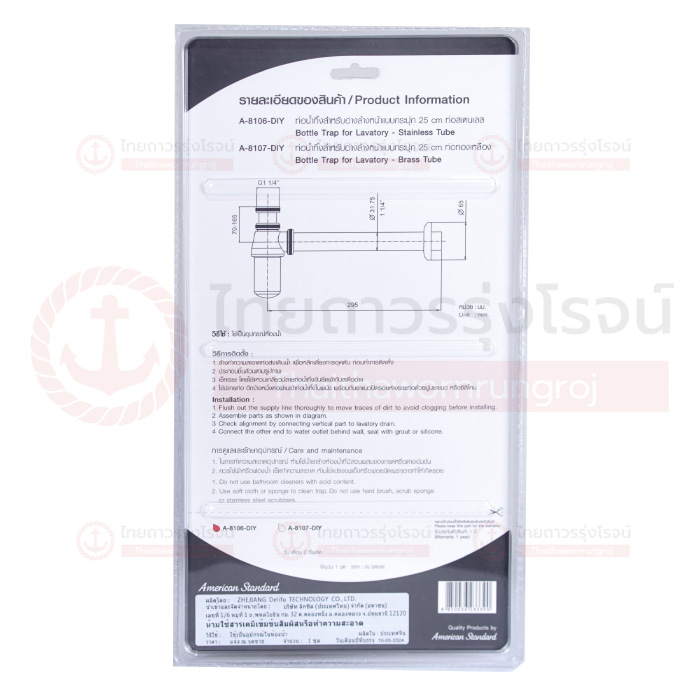 • ท่อน้ำทิ้งอ่างล้างหน้าแบบกระปุก AMERICAN STANDARD รุ่น A-8106