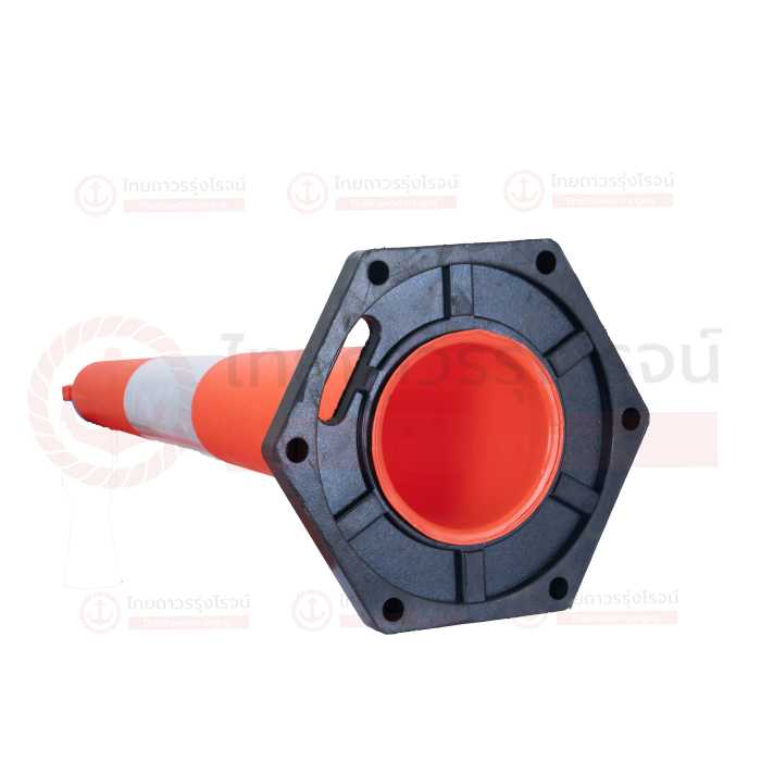 • ฐานยางของกรวยจราจรเพิ่มน้ำหนัก สามารถช่วยป้องกันการล้มของกรวยจราจร จากการพลิกคว่ำ หรือลมพัดแรง